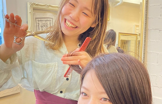 お客様も本当に優しい方が多く、家族のような感覚で私たちの成長を見守ってくださり、私はお客様のおかげで成長できたものもたくさんあると感じでいます。「美容師としてどうあるべきか?」「お客様との信頼関係を深めるためにはどうあるべきか?」など、ただ毎日施術・接客をするだけでなく、細かなところまでアシスタントの時期から学べます。